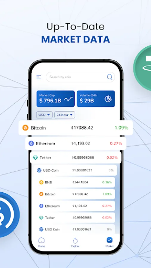 📈 Crypto Market: Get Crypto market capitalization stats & Real-time crypto market price. It shows changes for 1 hour, 24 hours, 7 days,1 month, and 1 year; users can set up a linear display of the chart or in the form of "candlesticks." Additionally, it has a section that lets you know the Top gainer & top loser in the last 24hrs, 7 days, and 1 month.