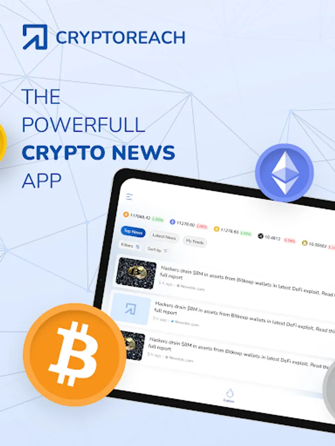 CryptoReach is a Crypto news app for crypto enthusiasts & investors. It aggregates crypto news from 400+ Trusted Cryptocurrency news sources worldwide which don't let you miss any updates in the crypto space. This platform offers Real-time crypto news, Coins market cap (crypto price tracking) & Coin specific news tracking.