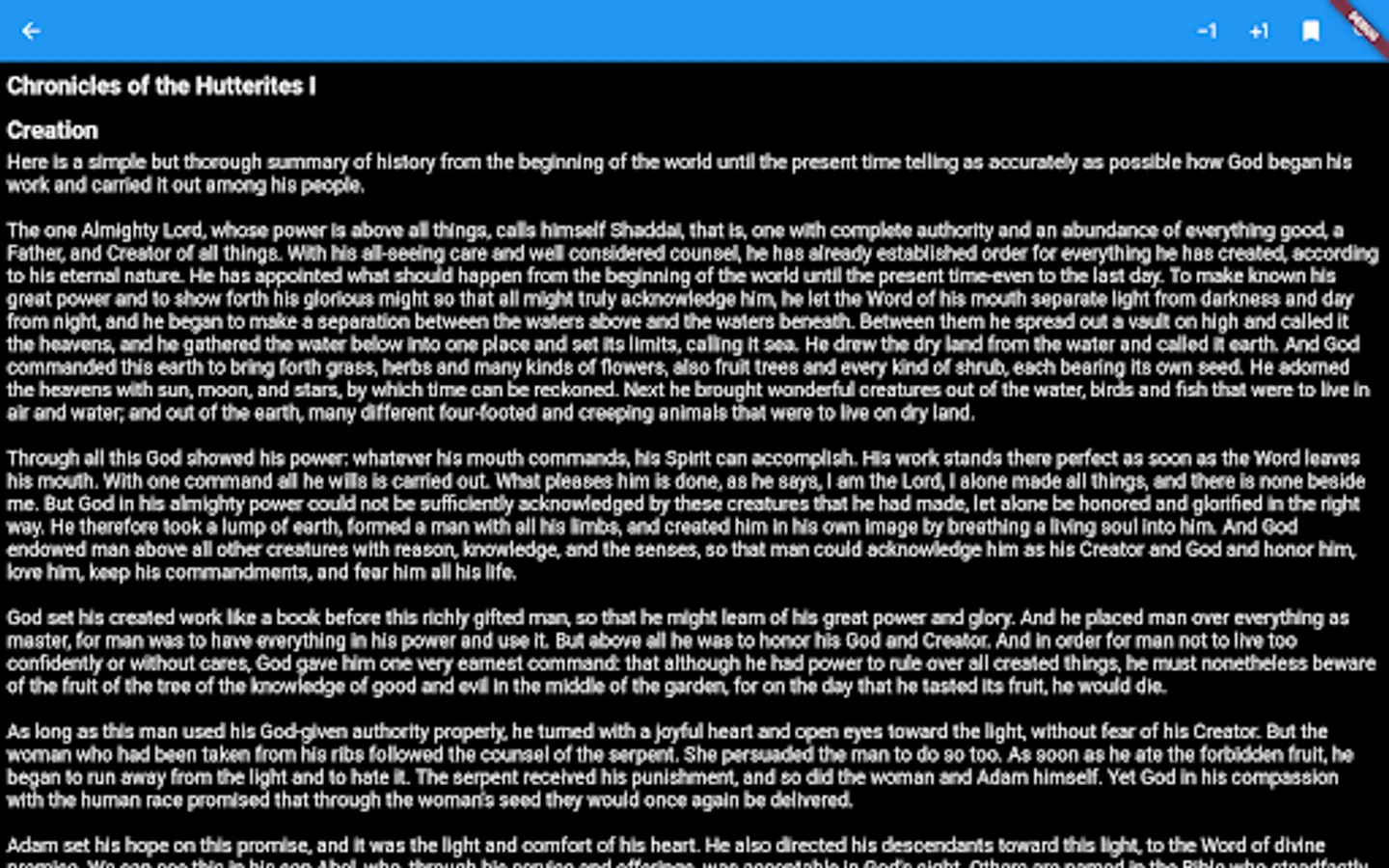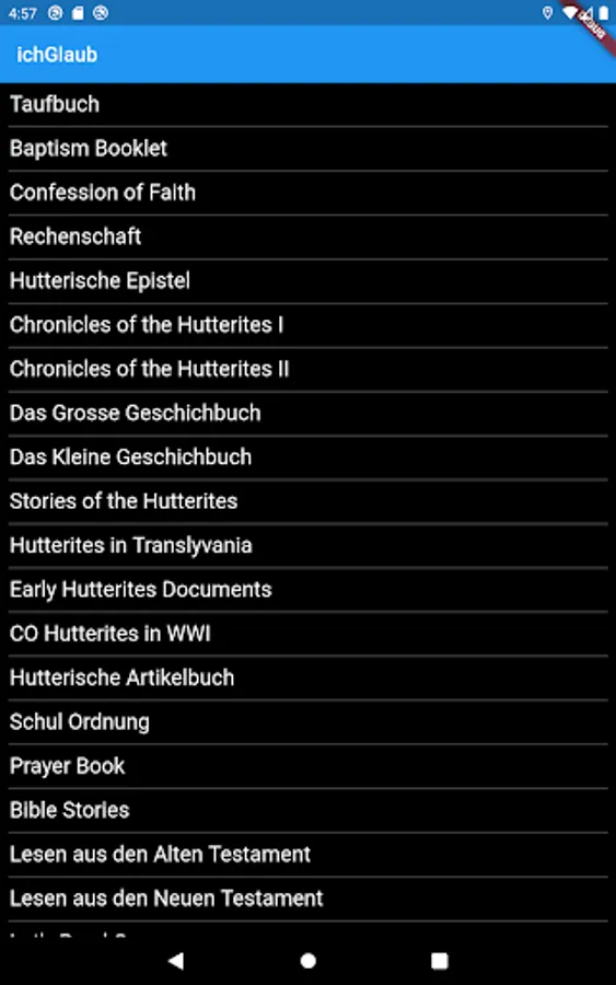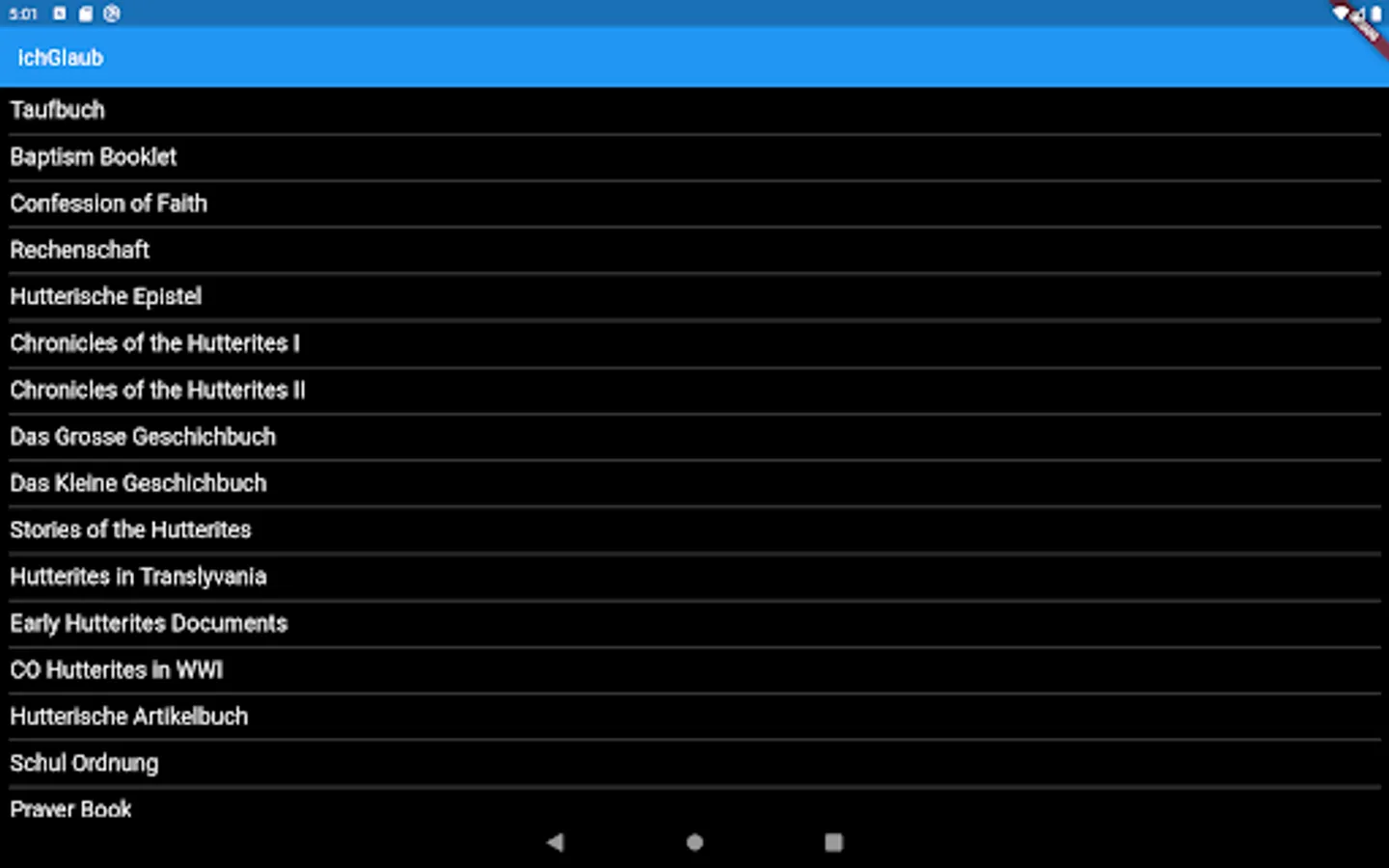 Also included in german and english are both of the Hutterian Chronicles which provide background information and examples of what the early Hutterites had to endure to remain true to their faith and believes.