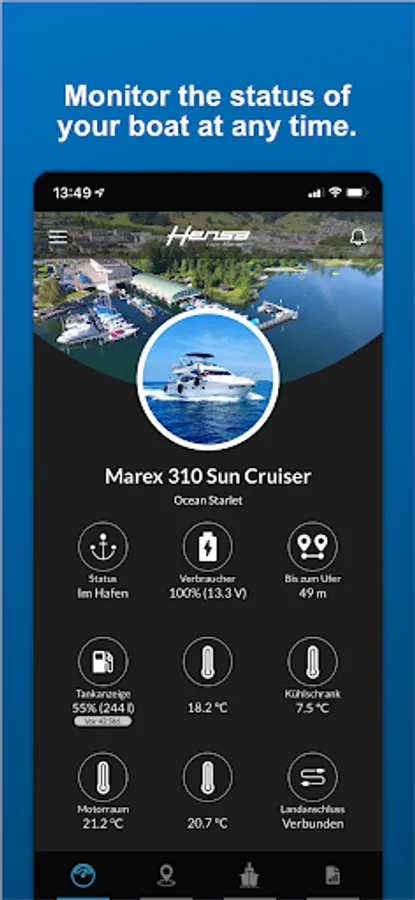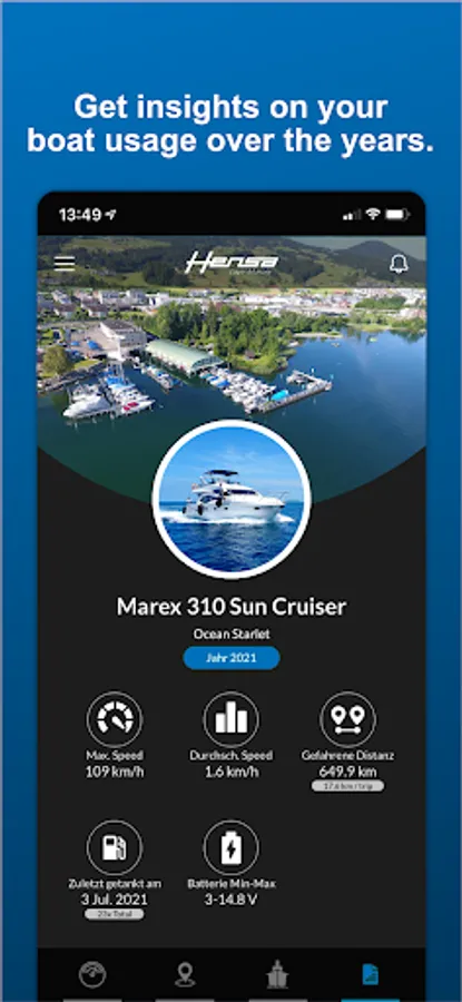 Connect live to your favorite shipyard and to your boat at any time and check all key functions. Configure warnings and prevent unexpected surprises. Receive evaluations of your trips and determine what you want to have analyzed. Share Insights with friends or just enjoy them for yourself and benefit from safety and protection. Anytime, unfiltered and reliable.