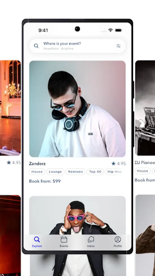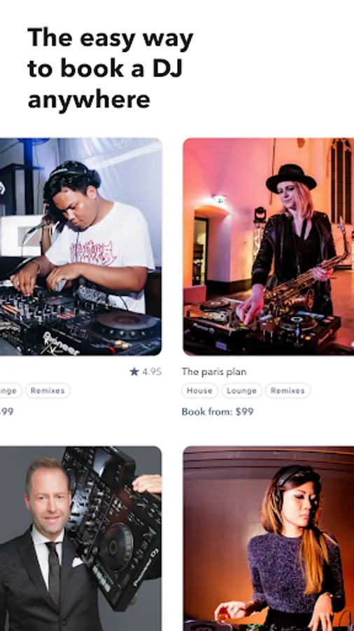 Discover thousands of DJs all over the globe, ready to play at your event. There's a DJ for any occasion and event. Need to set the mood at an opening party? There's who knows how to do it. Want to make your wedding even more memorable? There's an extraordinary DJ ready for you. Or do you need to throw a spontaneous '90s party this weekend? There's a DJ for that too.