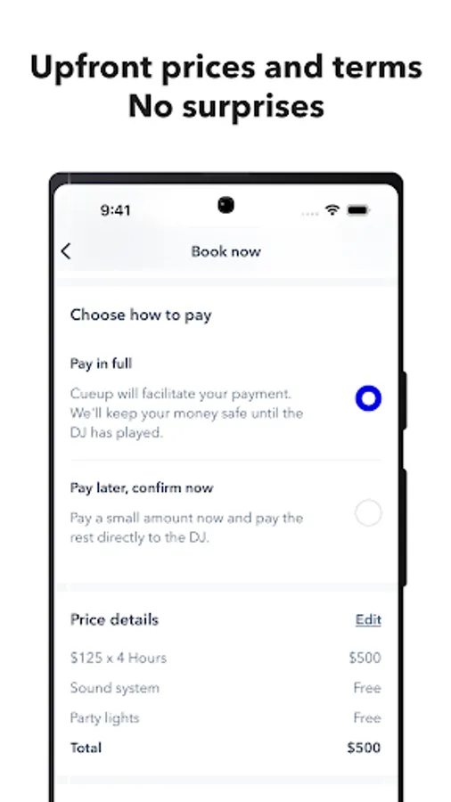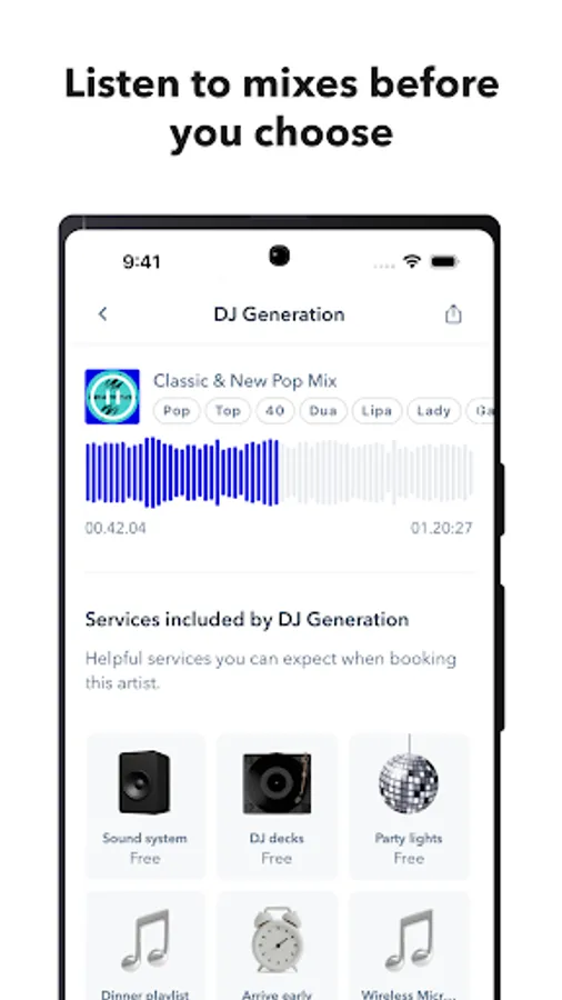 See upfront prices and what services are included before making your booking - you'll always know exactly what you're getting. You'll also get a clear overview of the DJ's terms and when is the latest day you can cancel and still get a full refund.