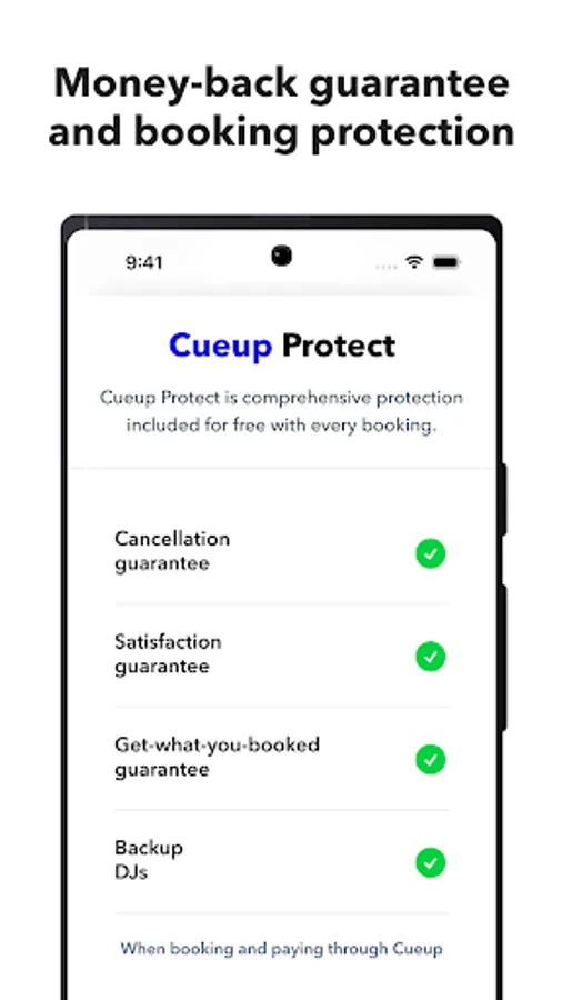 Unsatisfied with the performance? You'll get your money back if you've paid through Cueup. Read more about the terms on our website.