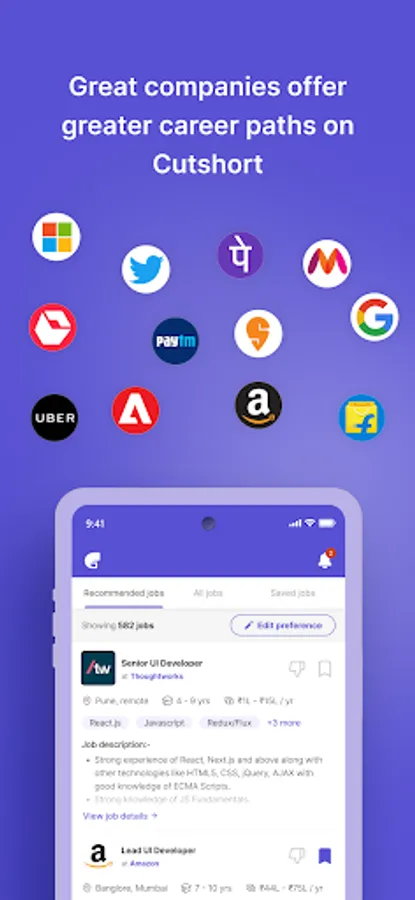 Cutshort is a fast job search app used by 4 million+ software developers, product managers & UX/UI designers.