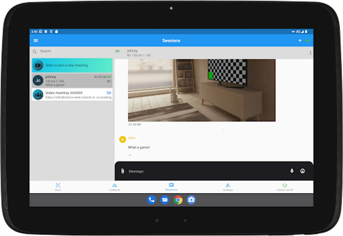 Cylonix is the client app that supports secure and super fast remote work services including secured high definition video conference with virtual on-premise meeting servers, virtual office, server-less remote desktop, server-less instant messaging and remote access to devices and servers.