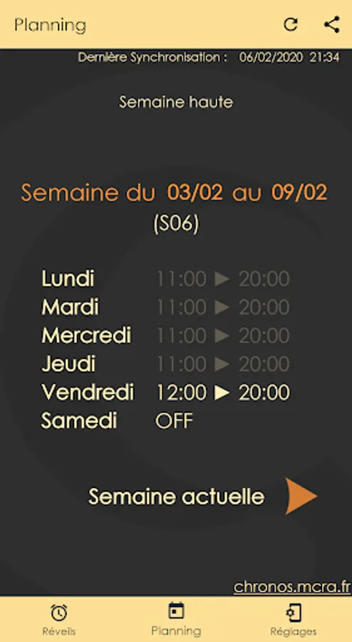 CronOS is an application capable of displaying a variable schedule retrieved from the site https://chronos.mcra.fr/