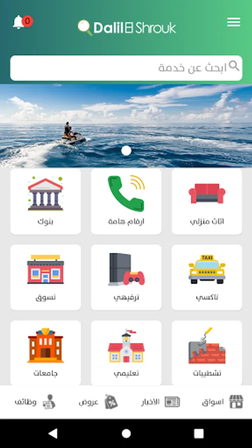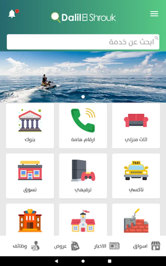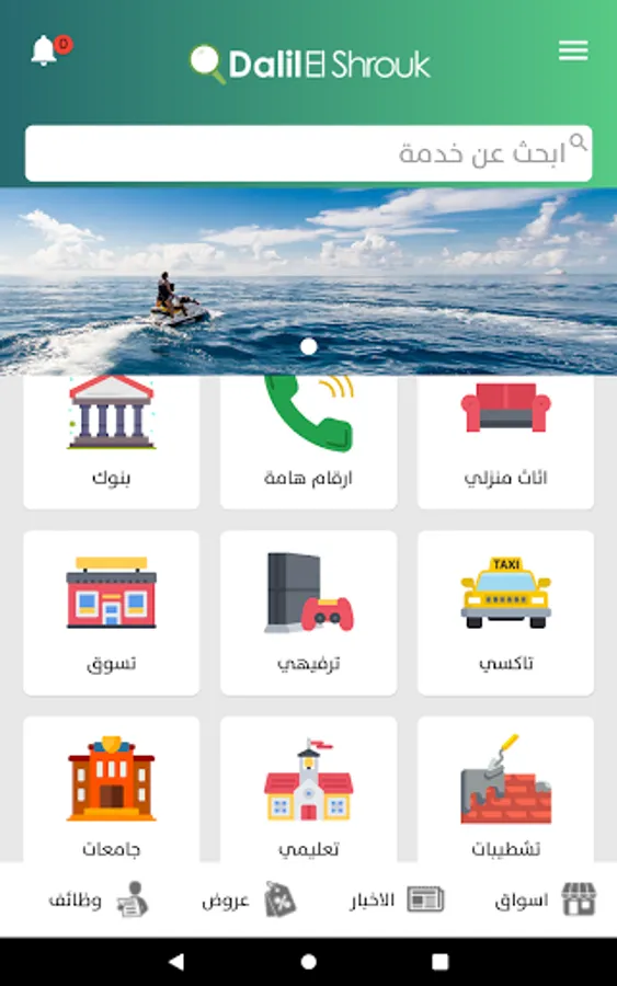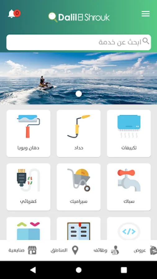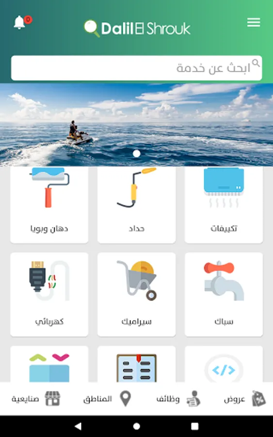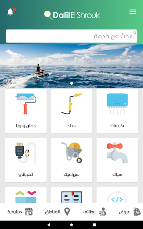 To search for craftsmen within the application, you can type (plumber, carpenter, ... etc.) in the search box and it will show you the stores that offer this service or have the required craftsmen.