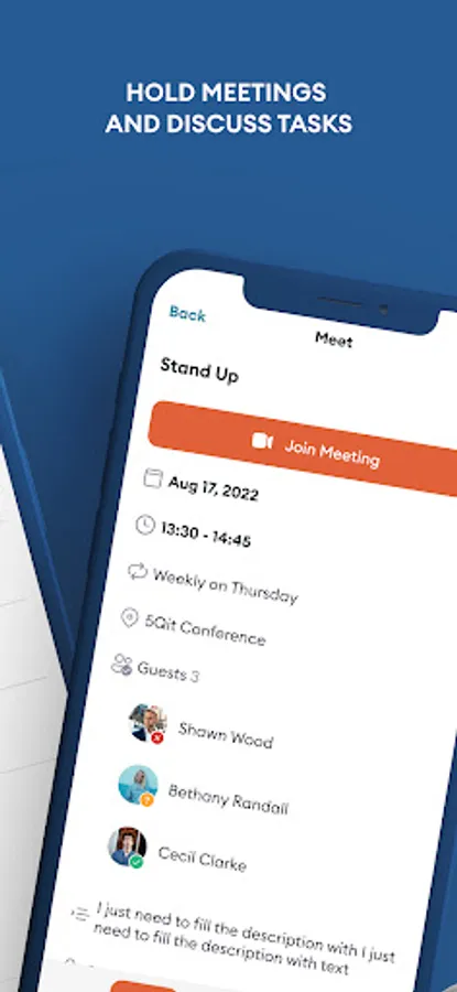 In the «Meeting Notes» section, you can keep records of all discussions during the meeting and immediately assign tasks to employees.