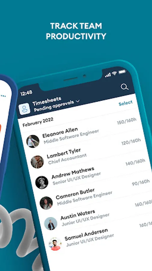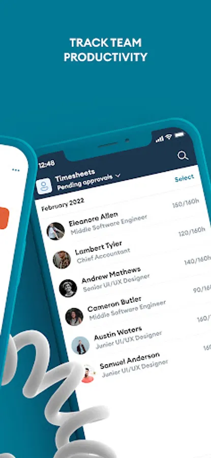 In the «Timesheet» section, you can keep track of employees' working hours and analyze their effectiveness.