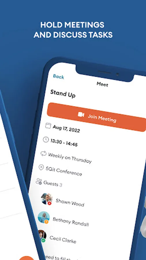 In the «Meetings» section, you can join online meetings, discuss important issues from anywhere in the world, share documents and links in the internal meeting chat.