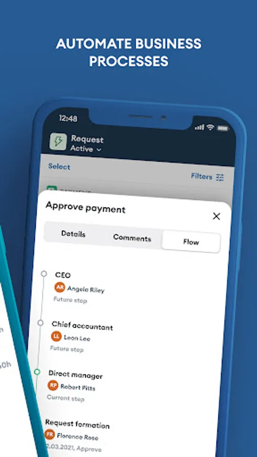 In the «Processes»section, you can approve documents in a couple of clicks and receive instant feedback.