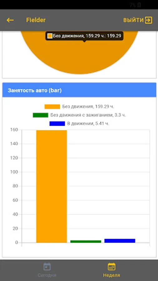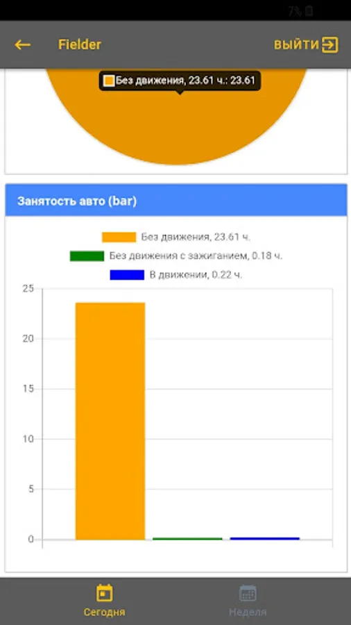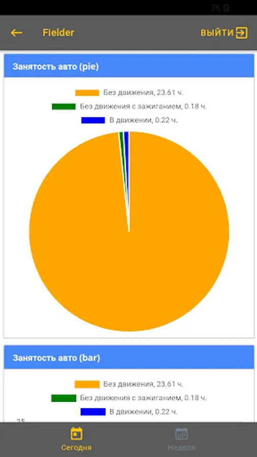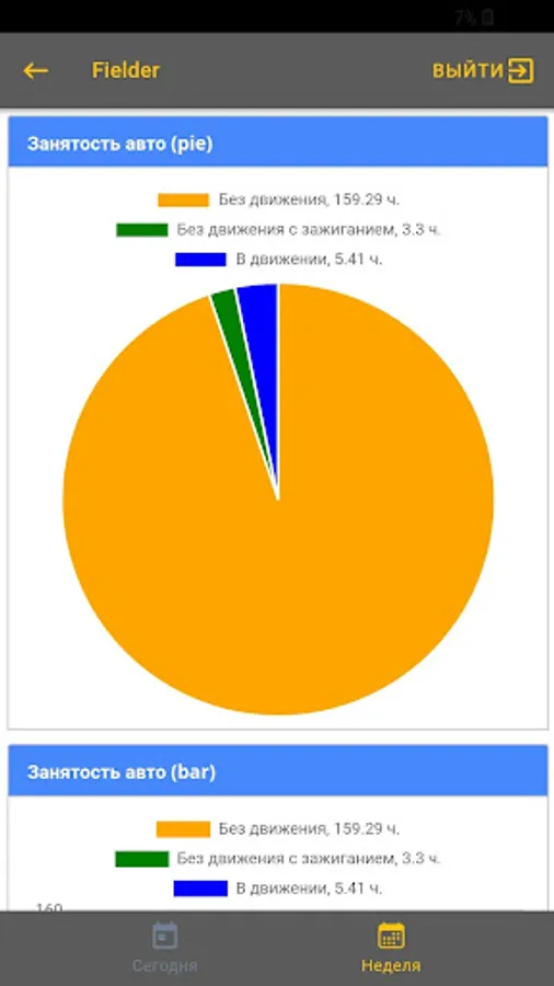 The application provides statistics on car use for the day and last week in the form of graphs.
