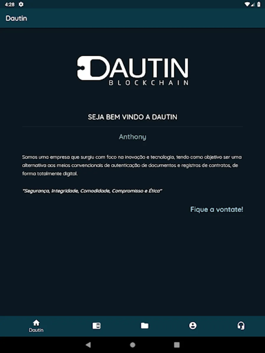 To access the Dautin application you already have to have a pre-registration in our online system and to use all the functions it is necessary that you have already generated your blockchain identity with us. Do you have doubts? Contact our support and we will give you all the necessary attention.