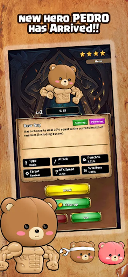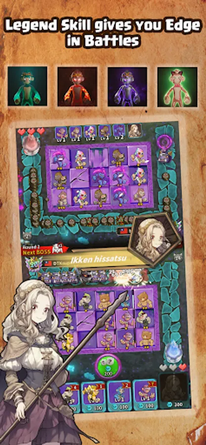 - Collect and upgrade your very own unique roster: With over 1,000 Random possible combinations, your playstyle will define your team and strategy. Choose the right heroes, featuring four main types: Force, Magic, Combine, and Assist, to create the perfect synergy to maximize your winning capabilities.