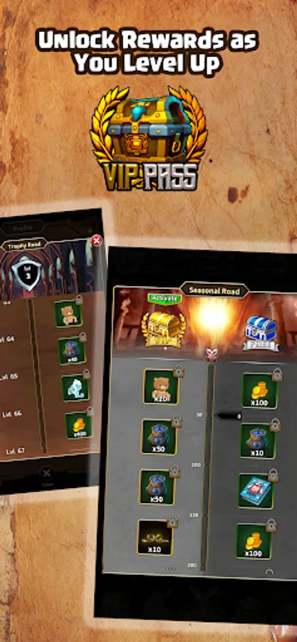 - Level Rewards: With the extra level rewards path, players can earn more coins and shields than ever before! As you progress through the game and reach new levels, you'll unlock increasingly valuable rewards that can be used to get the summons, collect and upgrade your heroes.