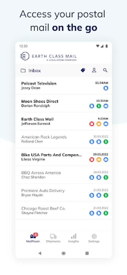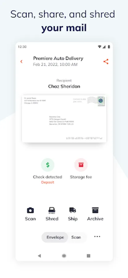 - You take control: You access your postal mail and deposit checks online. View your digital mail and decide what you want to do with it: shred it, share it, or ship it with Earth Class Mail app.