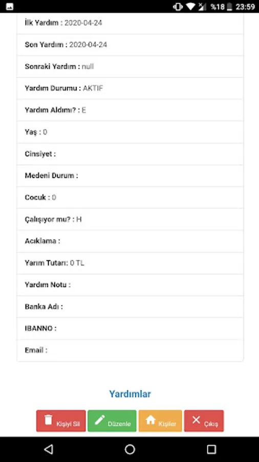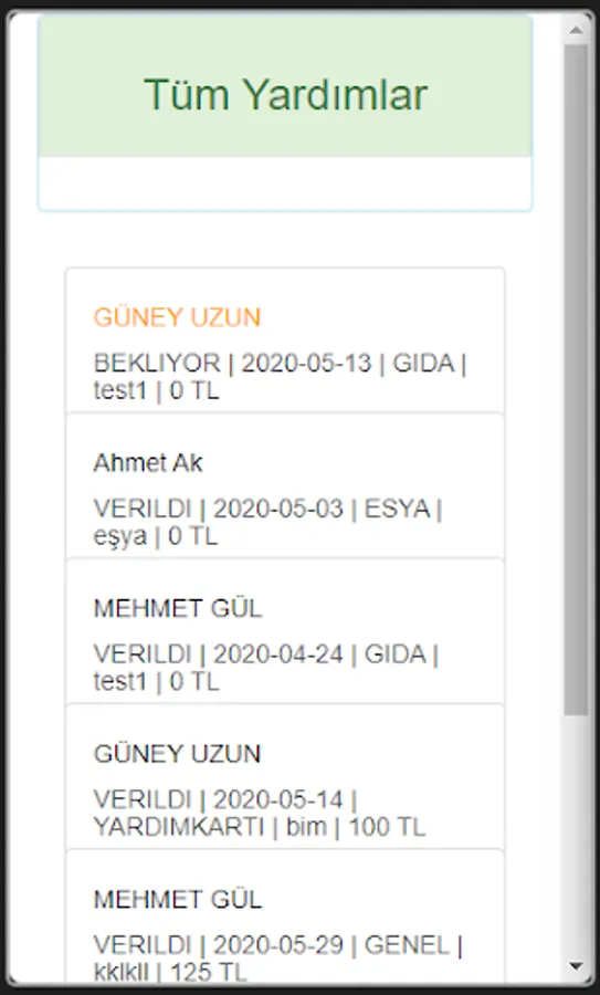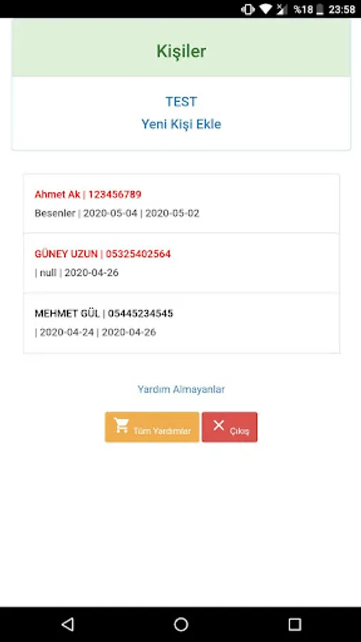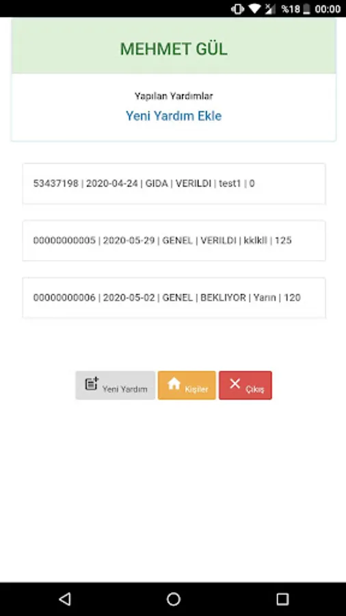 While recording the aid to the person, the Call Date shows when to go to that person or that person will come to get help. If the aid status is marked as GIVEN, the section of the person that I received help in that person's card is automatically marked as E.