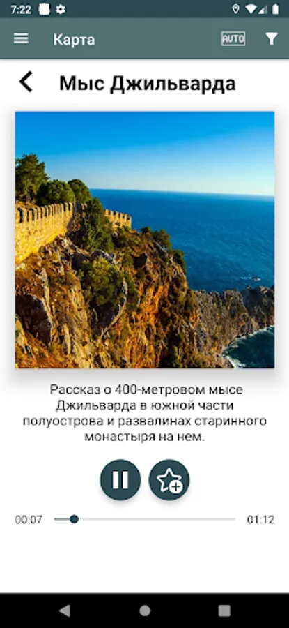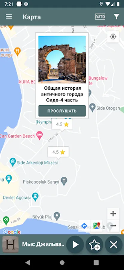Наиболее полный и бесплатный аудиогид по Алании и провинции Анталия в Турции со множеством интересных рассказов о достопримечательностях, истории и традициях. Все истории записаны лучшими местными гидами и не уступят по качеству тому, что вы можете узнать на индивидуальной платной экскурсии. Но мы не просто аудиогид, мы платформа, которая позволяет любому рассказчику опубликовать свои истории, закрепить за собой авторские права и монетизировать этот контент с помощью технологии блокчейн.