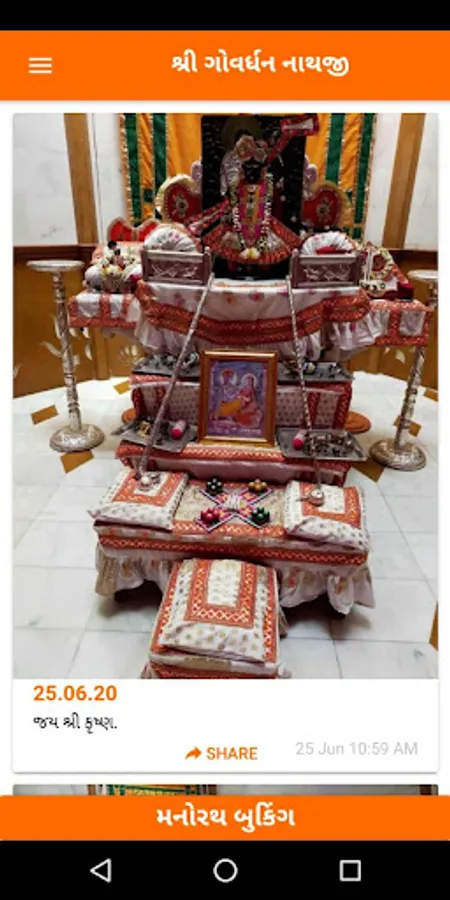 Daily darshan and updates from Shree Goverdhan Haveli. Also, now you can book menorah, hindola etc online through this app.