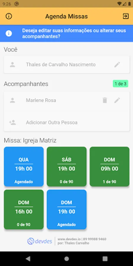 The main idea of the app is that the faithful can schedule the day and time of their mass, without having to contact the parish, saving response time, and better organizing the list of participants.