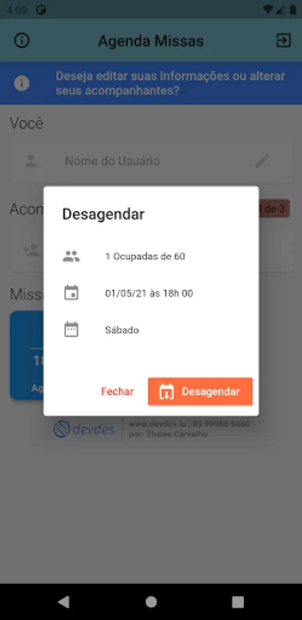 The main idea of the app is that the faithful can schedule the day and time of their mass, without having to contact the parish, saving response time, and better organizing the list of participants.