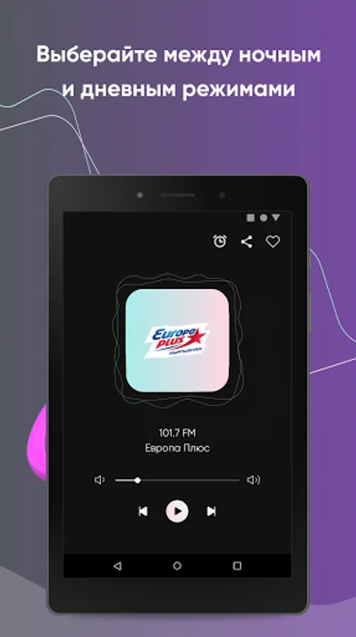 • Favorites. Mark your favorite radio stations with "hearts" and they will automatically be saved in the favorites list (press "heart" on the top panel).
