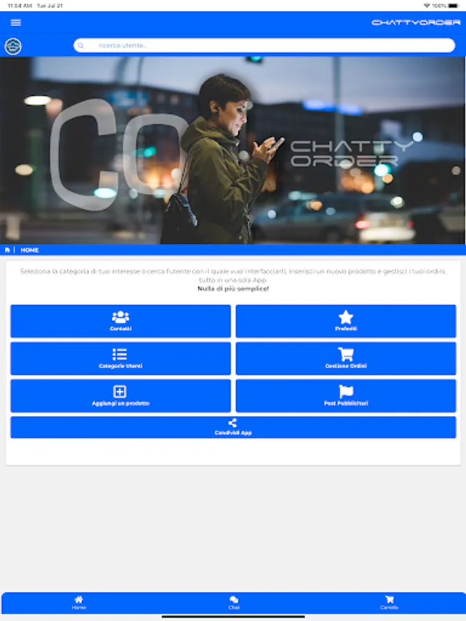 Communication between companies, suppliers and customers has never been easier and faster: whether you have multiple offices or agents in different places or if you want to revolutionize the way you communicate with your users, Chatty Order is the answer to your desire for innovation .