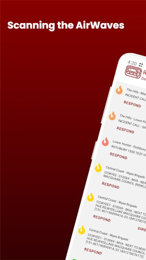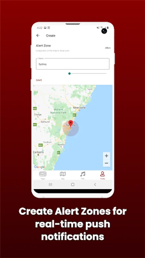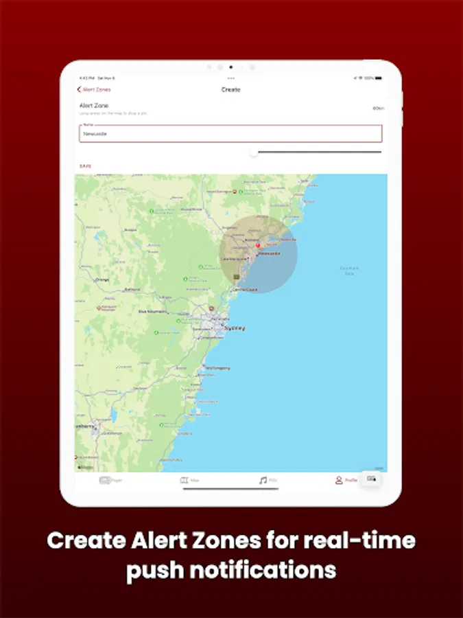 - Create Alert Zones with up to a 100km radius for real-time notifications for any incident within that area *RFSPager Pro