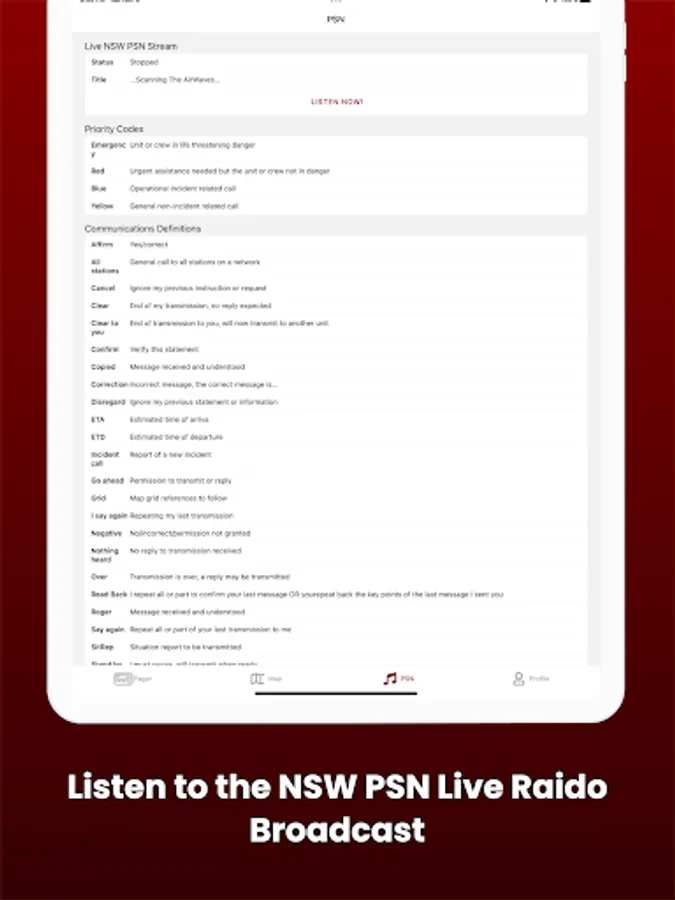 The RFS Pager mobile application gives you real-time access to the NSW PSN Emergency Services Pager messages.