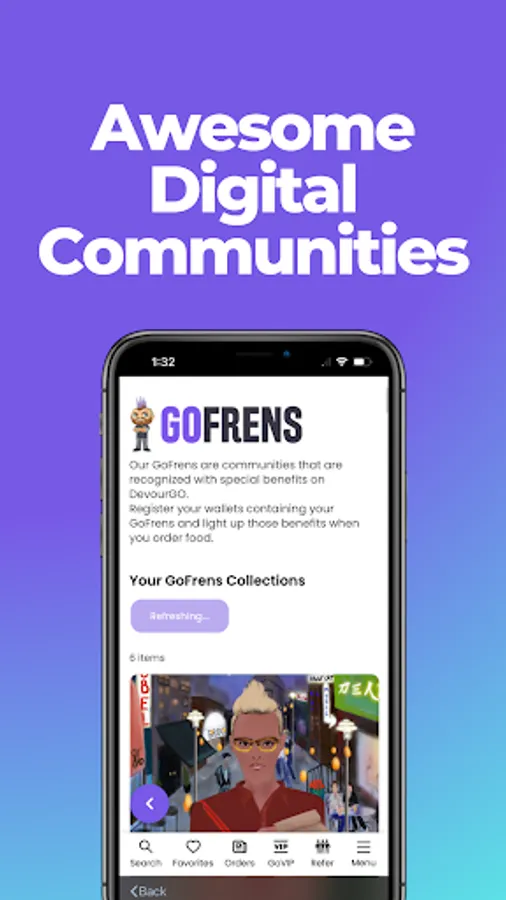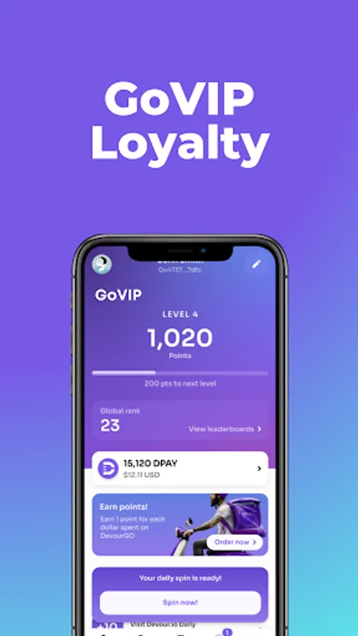GoVIP is at the heart of DevourGO, offering food fans a unique opportunity to unlock exclusive benefits. Engage with fellow food enthusiasts, share your experiences, and play interactive games to earn crypto, merchandise, meals, and exciting lootboxes packed with prizes. Order and be rewarded with promotions, secret menu items, and more, all based on the digital assets you hold.