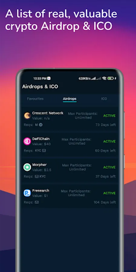 Newly launched airdrops are added in a well-curated list by the team. You can also create a list of your bookmarked airdrops and ICOs (Initial Coin Offerings). This app classifies analysis in terms of volume, number of holders, and growth percentage. At DEXZone, professional providers obtain all data with direct and extensive access to crypto and token (Detects newly created tokens and monitor it).