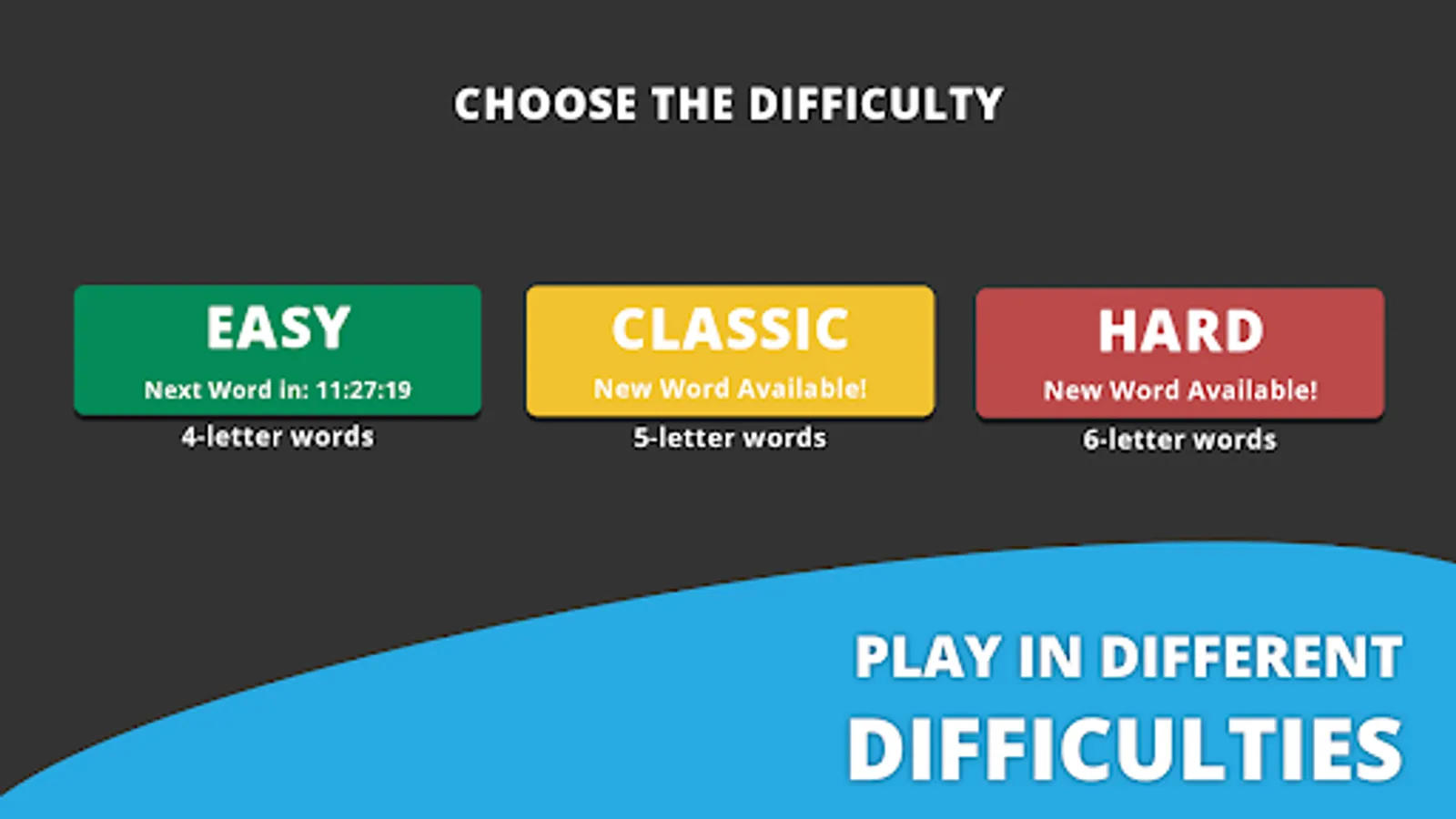 β Daily word puzzles in three different difficulty levels depending on the number of letters.