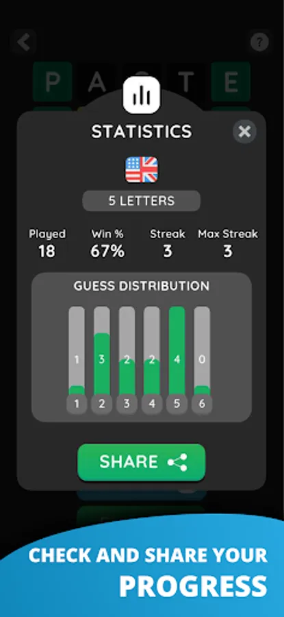 β The ability to share the number of tries you made to solve the daily Worldle.