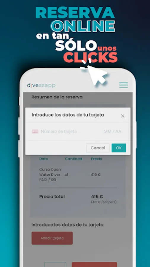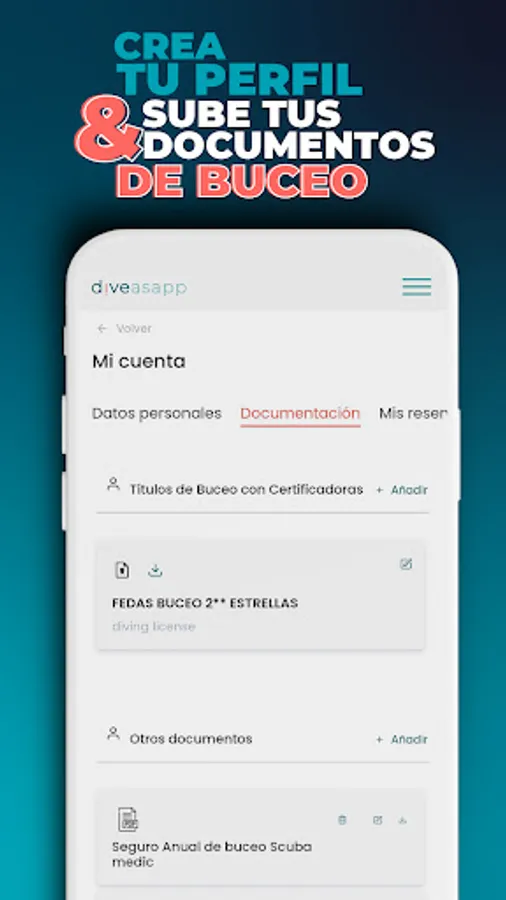 If what you want is to digitize the process of your reservations and that your divers find you easily, you can enter www.diveasapp.com from the "companies" button.
