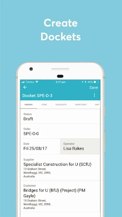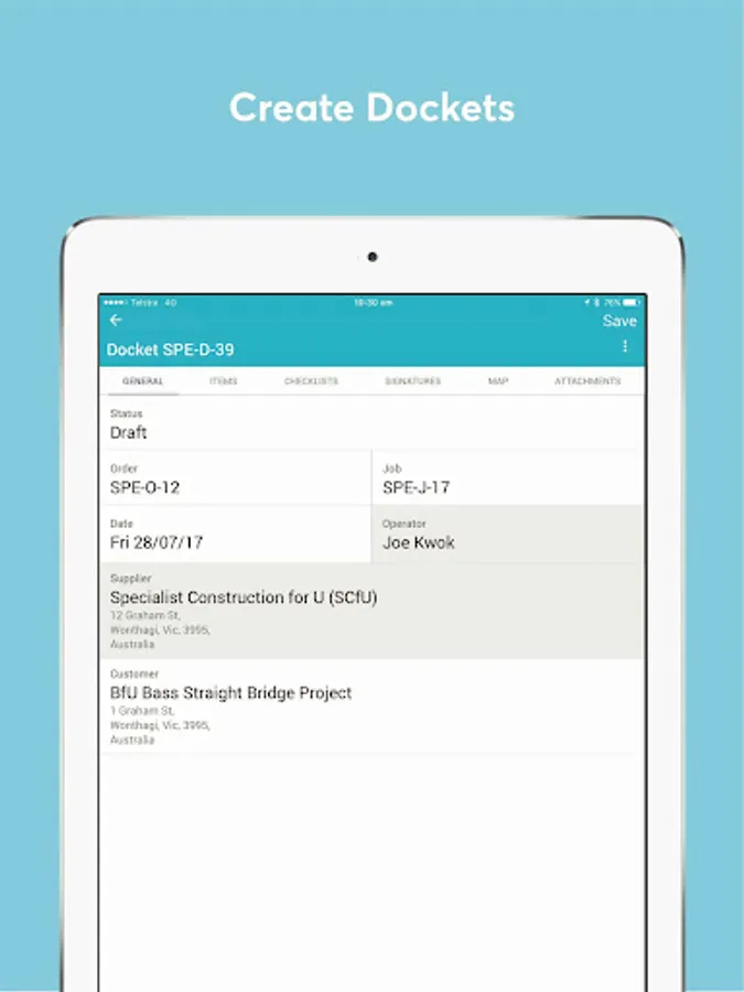 What's more, Docketbook Orders makes docket creation even easier. Creating a Docket from an Order means that the customer, supplier and docket templates are preselected and the item list contains only the items agreed with your customer.