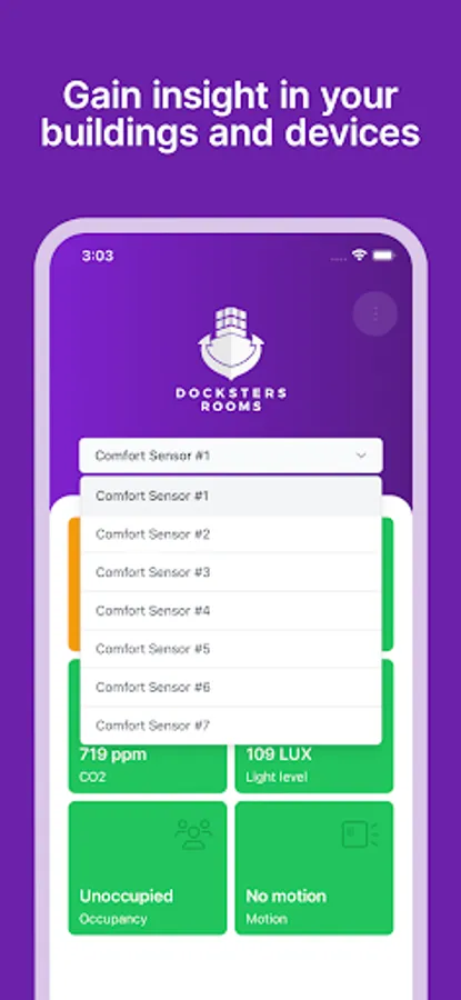 Docksters Rooms lets you view all the comfort and room sensors in your Docksters environment in a way that can be understood by everyone.