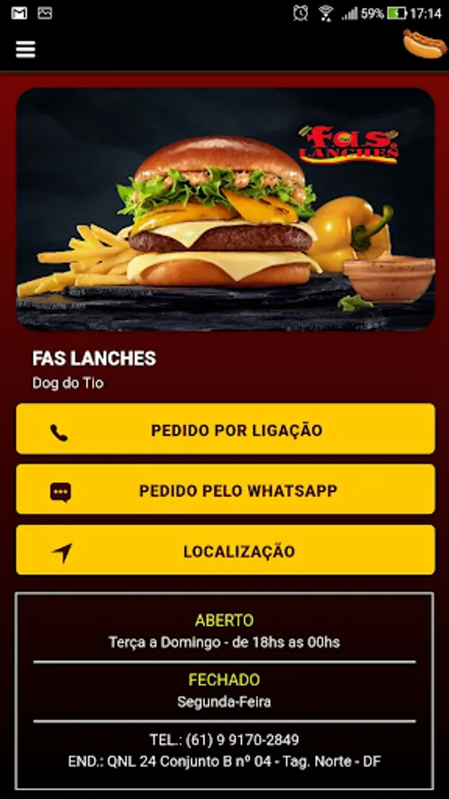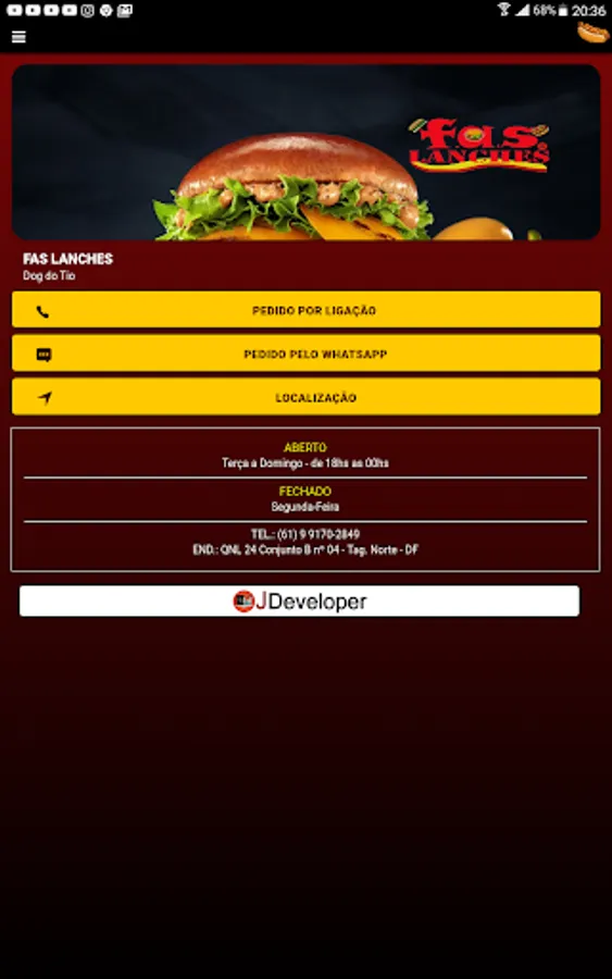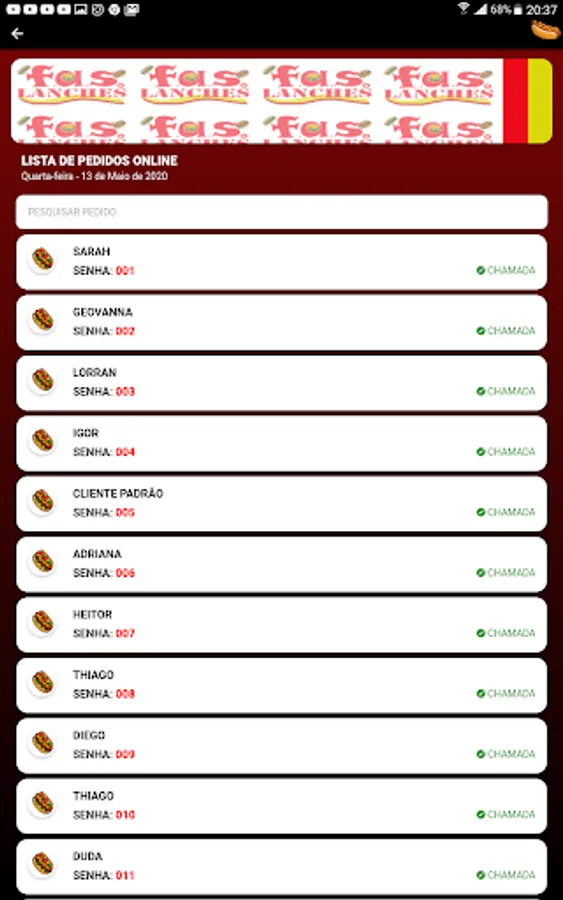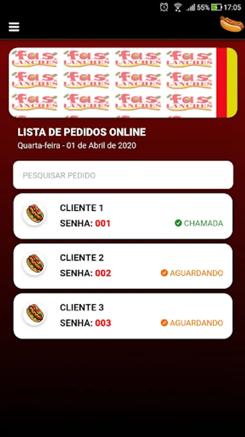 Fast-food application to facilitate the creation and tracking of orders from the FAS Lanches - Dog do uncle