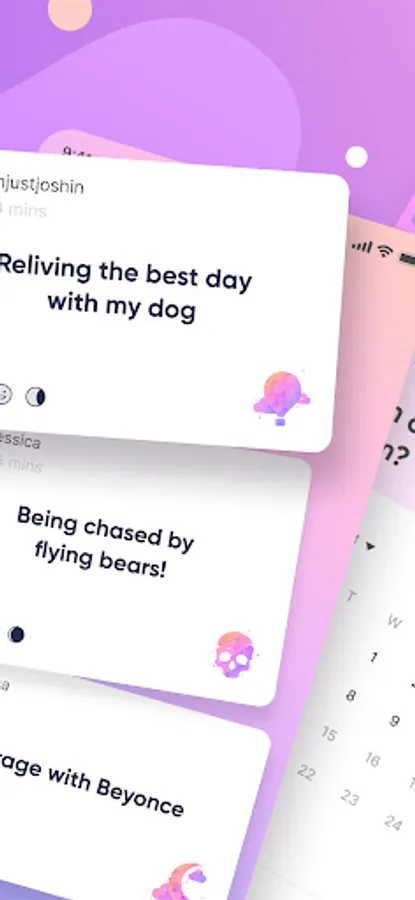Explore the meaning of your subconscious with Dreamr. Whether it be a normal dream, a nightmare, deja-vu, or a day dream, you can journal each experience in Dreamr and correlate them to the events in your waking life. Dreamr helps you do this by: