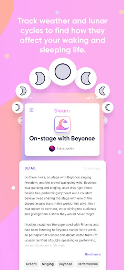 - Weather and Lunar tracking for each subconscious event so you can correlate weather and lunar conditions to your experience.