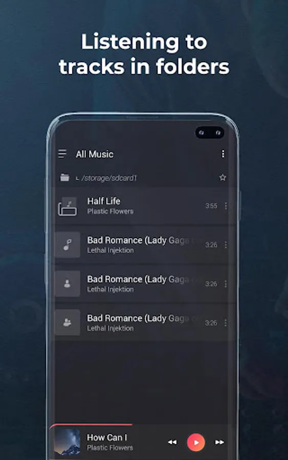 ☆ Seven different ways to display media library: Folders, List of Artists, List of Albums, Playlists, All tracks and Recently Added