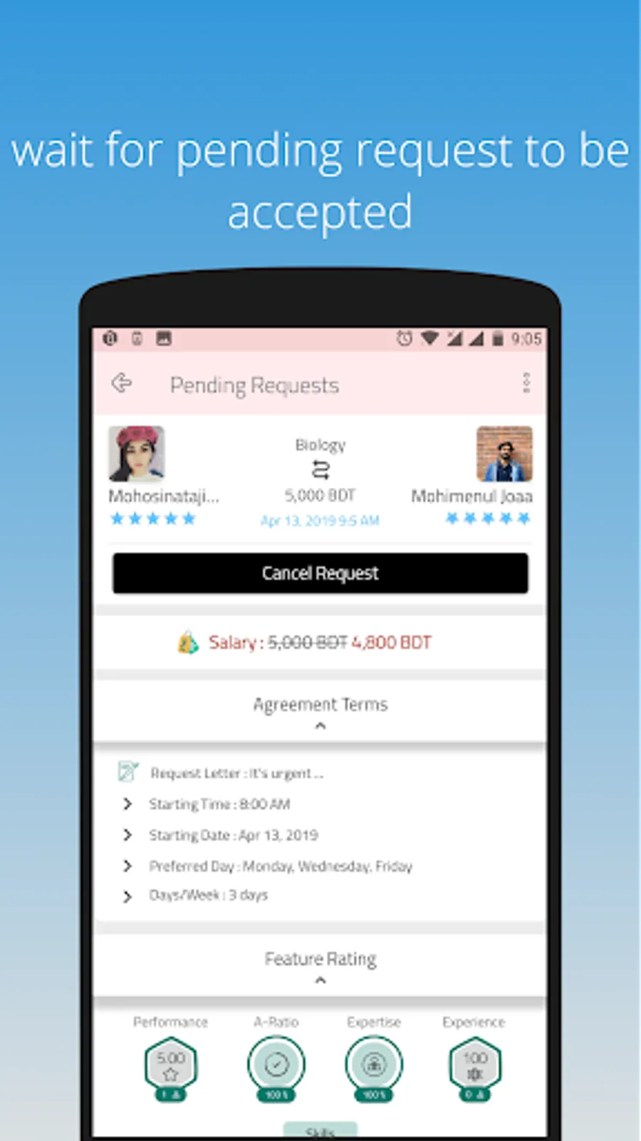 ֍ Student penalty: If student request a mentor and then before mentors response he/she reject it than he gets BDT 50৳ penalty which he/she is obliged to pay to the next requested mentor.