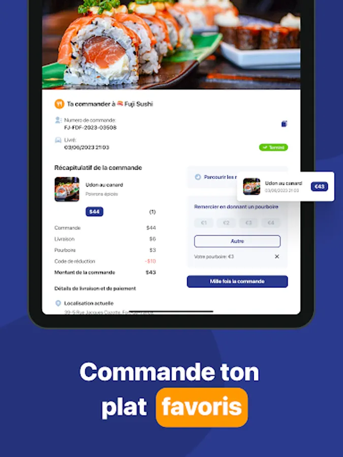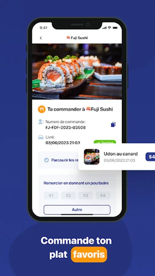 Order at home or at work and have it delivered in 30 min.
