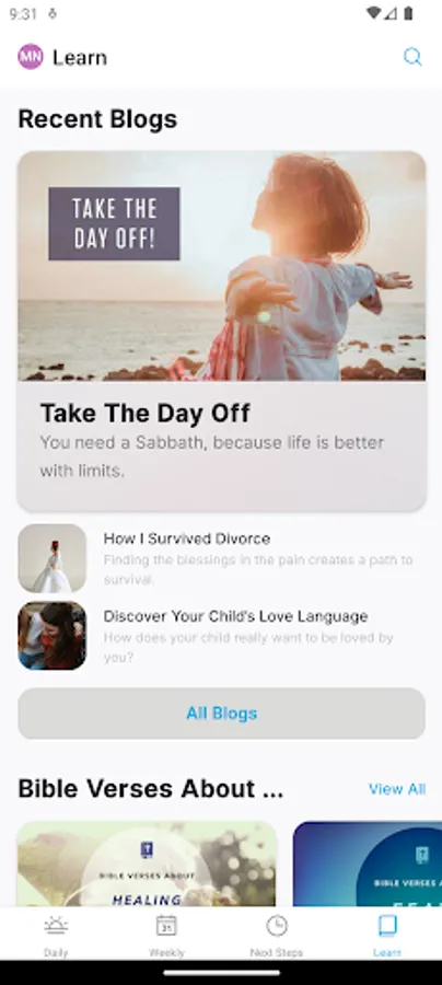 When it comes to content, trade doom scrolling on your phone for inspiring and authentic content! Head over to the Learn tab for articles that are encouraging and engaging. Pick from the topics that resonate with you– relationships, parenting, mental and emotional health, young adults, and bible resources.