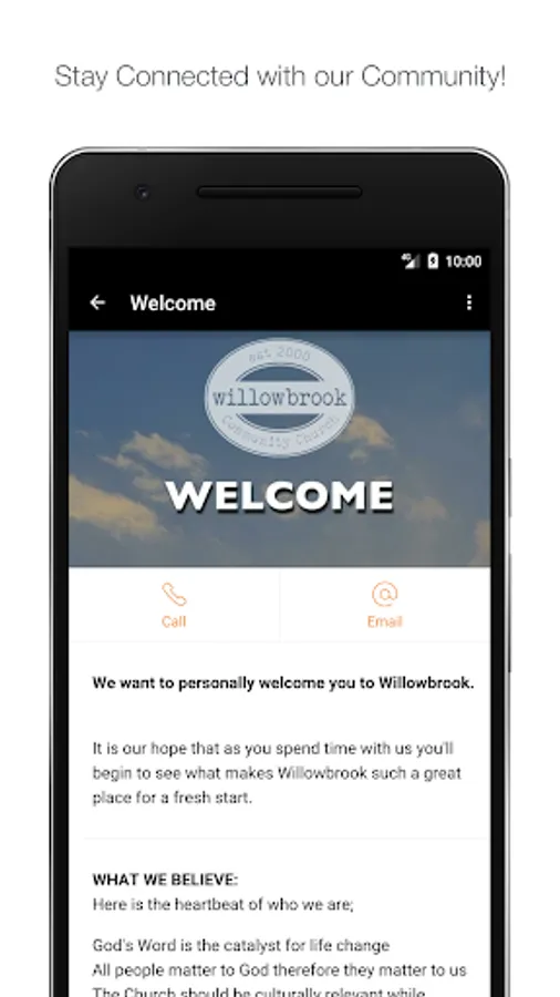Welcome to the official Willowbrook Community Church App! Our app allows you to stream life talks from our teaching pastors, access Biblical content and find out what's taking place around the 'Brook! Willowbrook Community Church exists to lead people into a growing relationship with Jesus Christ, by creating an environment that unchurched people love to attend! If you enjoy using this app, be sure to share it with your friends and family.