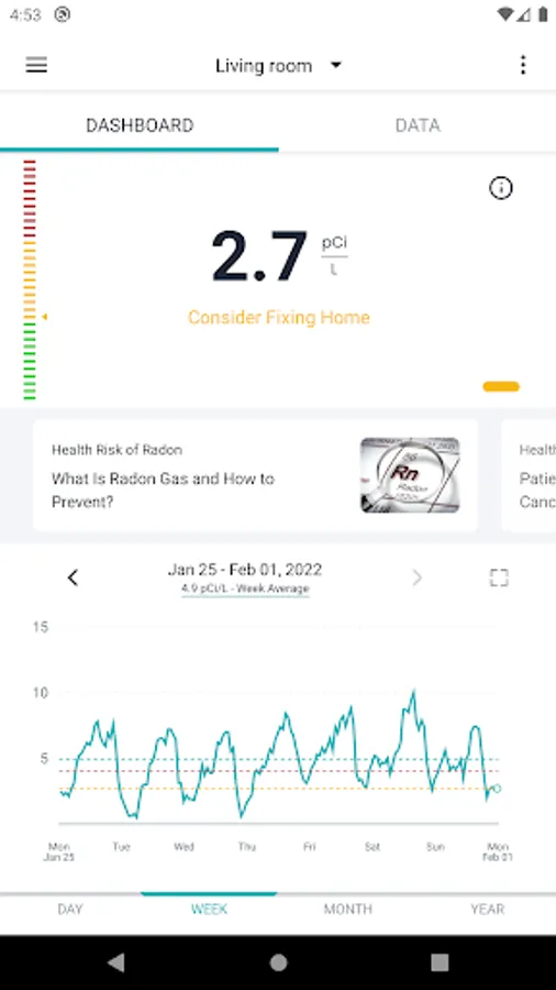 The free app allows you to monitor EcoQube’s real-time radon levels from anywhere, anytime. It is simple to set up and easily allows you to review current or past radon levels. The app includes features like alerts and share notifications if radon levels go above your comfort level. The app also keeps your EcoQube up to date with future upgrades.
