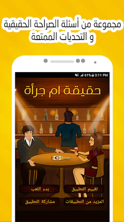 Game fact or daring plain contains a set of Asailh real frankness and challenges fun and interesting game truth or challenge designed Bhtal professional saluting superior to all competing applications from saluting the design As for the questions and Althadit in the application of the fact that they are questions do not contain few literature questions