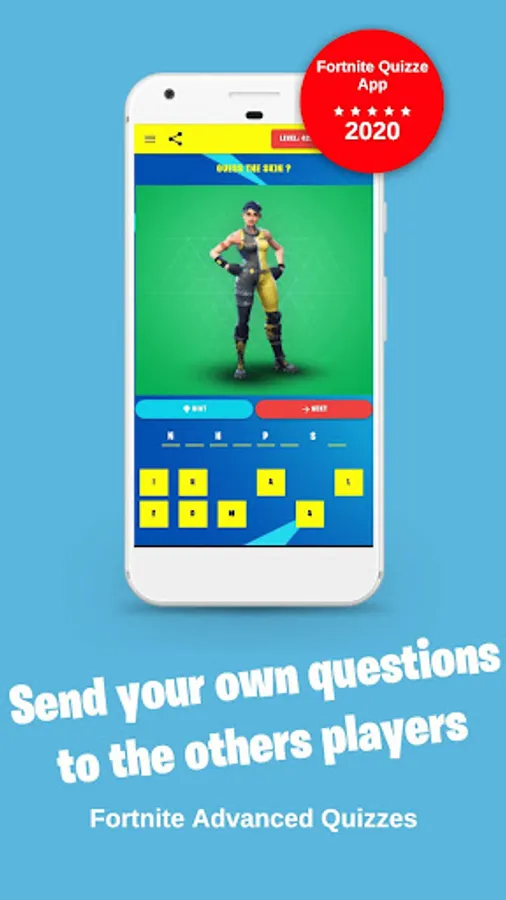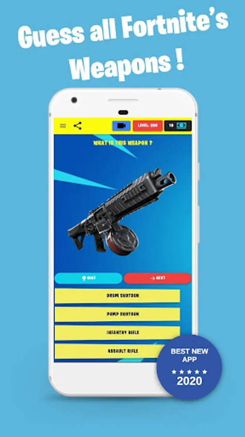 Get the app to challenge yourself with various kinds of fun quizzes about the Fortnite game including all the famous dances, emotes, weapons, skins & cosmetics.