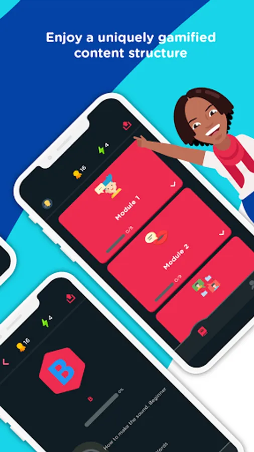 Earn points and rewards as you level up and improve in the language.