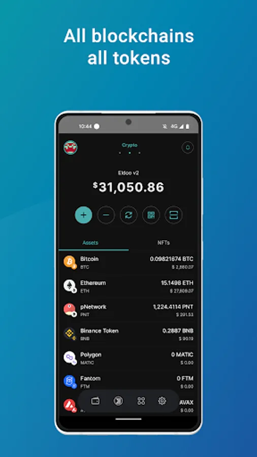 Eidoo supports popular blockchains and tokens, including Bitcoin (BTC), Ethereum (ETH), Binance Token (BNB), Polygon (MATIC), Fantom (FTM), Avalanche (AVAX), pNetwork (PNT), USDC, DAI, UNI, SHIB.