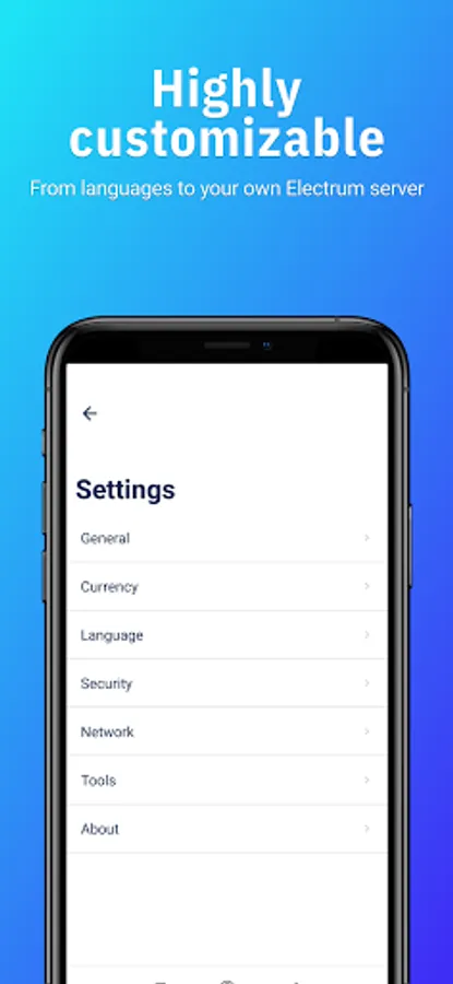 - Custom Electrum server. You can setup your own electrum server for your mobile wallet.